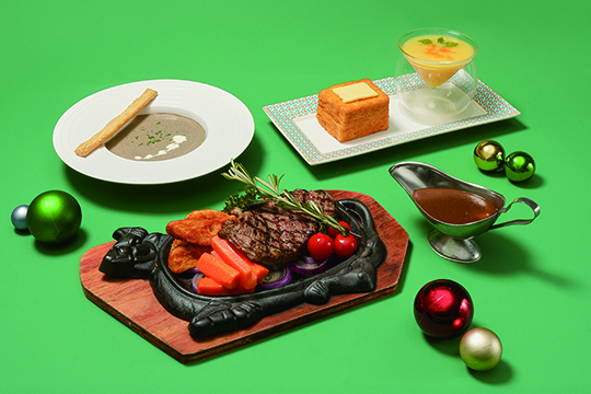 「燊哥冰室」由即日起至2026年1月3日呈現「Ho Ho Ho!聖誕熱辣辣鐵板餐」。套餐包括「黑松露蘑菇濃湯」、「鐵板西冷牛扒或雞扒」及「金磚多士配楊枝甘露」。鐵板套餐澳門幣188元,註冊成為澳門葡京人會員更可享會員優惠價。