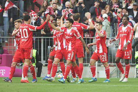 【特訊】德甲勁旅拜仁慕尼黑奪得今屆聯賽錦標。他們昨晨主場4:2反勝史特加,在餘下4輪賽事下領先第二位的多蒙特15分,第35次在聯賽封王。拜仁今場開賽21分鐘失守。拉菲爾古里路、尼高拉斯積遜及阿方素戴維斯其後在6分鐘內各入一球,協助拜仁半場反先3:1。後備上陣的哈利卡尼換邊後亦建一功。