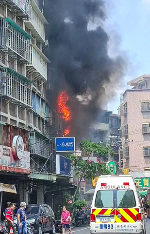 ◎ 四月二十一日下午,台灣新北市三重區大仁街一棟五層樓連棟公寓,二樓冷氣室外機突然起火燃燒,火勢與濃煙迅速向上竄升延燒至三樓,消防員於二樓火場內救出一名七十多歲的婦人,但已無生命跡象,另有兩名住戶一度受困頂樓,最終順利獲救。(香港中通社圖片)