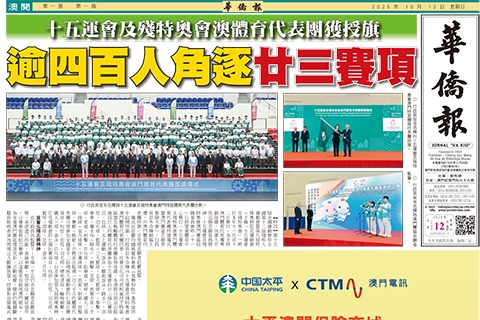 【特訊】第十五屆全國運動會和全國第十二屆殘疾人運動會暨第九屆特殊奧林匹克運動會(下稱「十五運會及殘特奧會」)將於本年十一月及十二月舉行,為支持澳門體育代表團勇創佳績、向廣大市民弘揚志願服務精神,十五運會及殘特奧會澳門賽區組織委員會昨(十一)日假望廈體育中心舉行「十五運會及殘特奧會澳門體育代表團授旗…